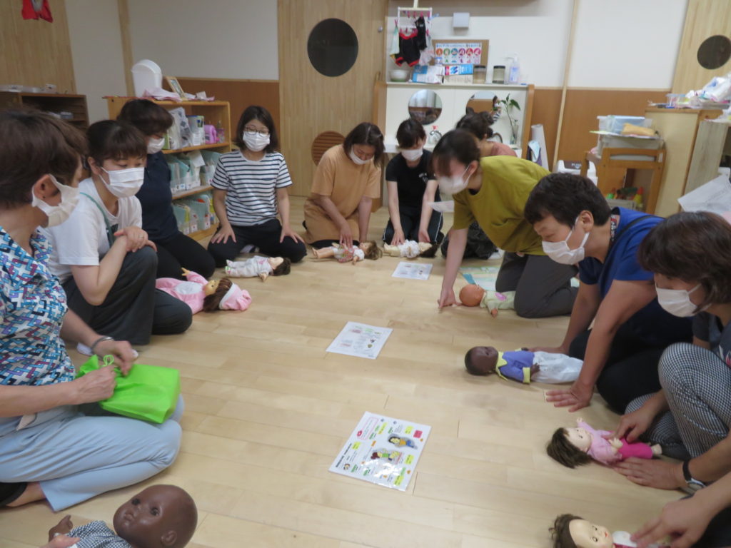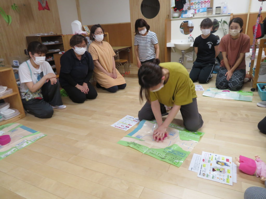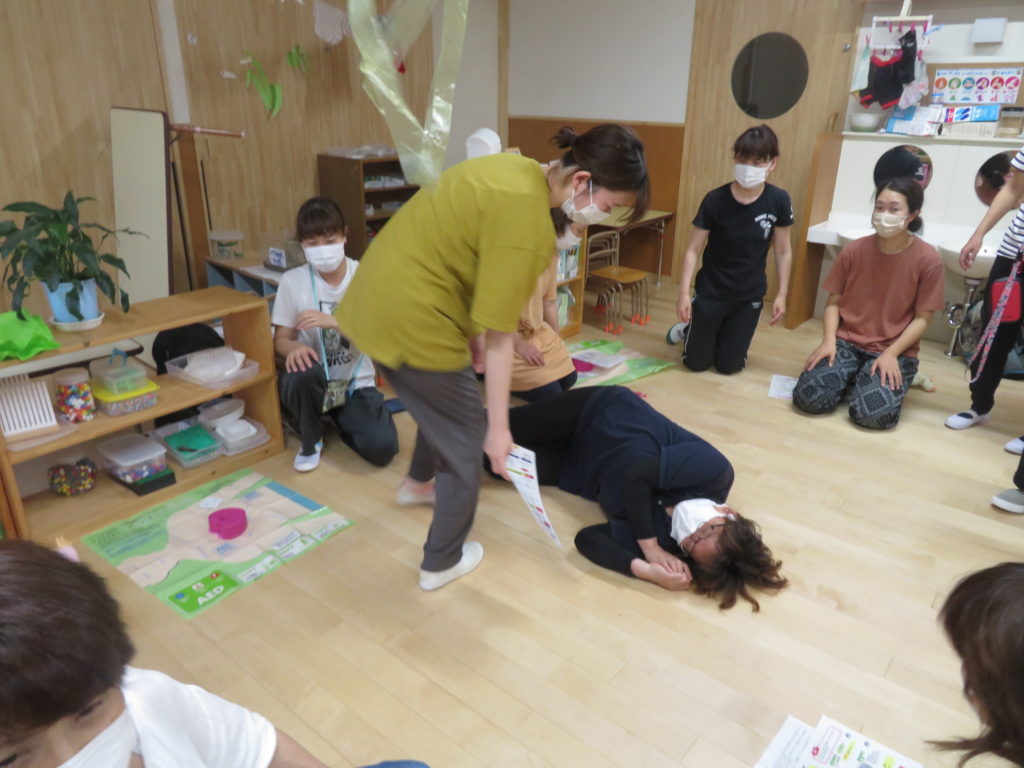 7月14日からプール遊びが始まります。その前に、職員全員で、AEDの使い方や心肺蘇生の訓練を行いました(7月9日)。毎年行っているものですが、やはり人間の記憶はすぐに薄れます。プールが始まる前に訓練を行うことの大切さを、訓練を行いながら改めて感じました。